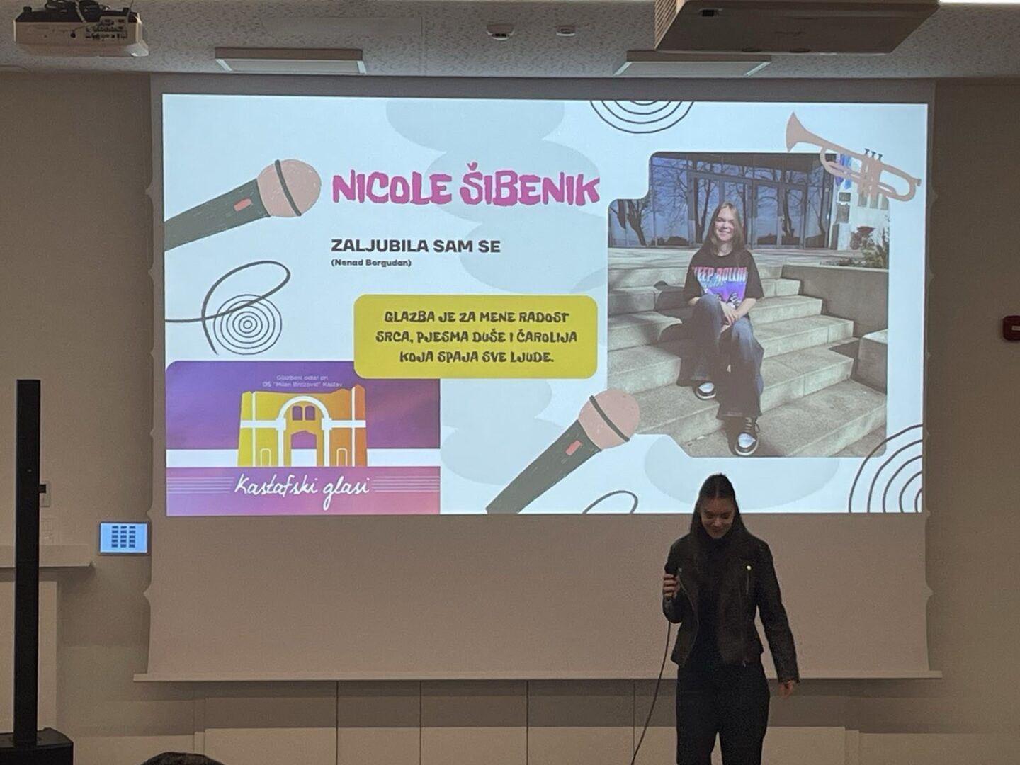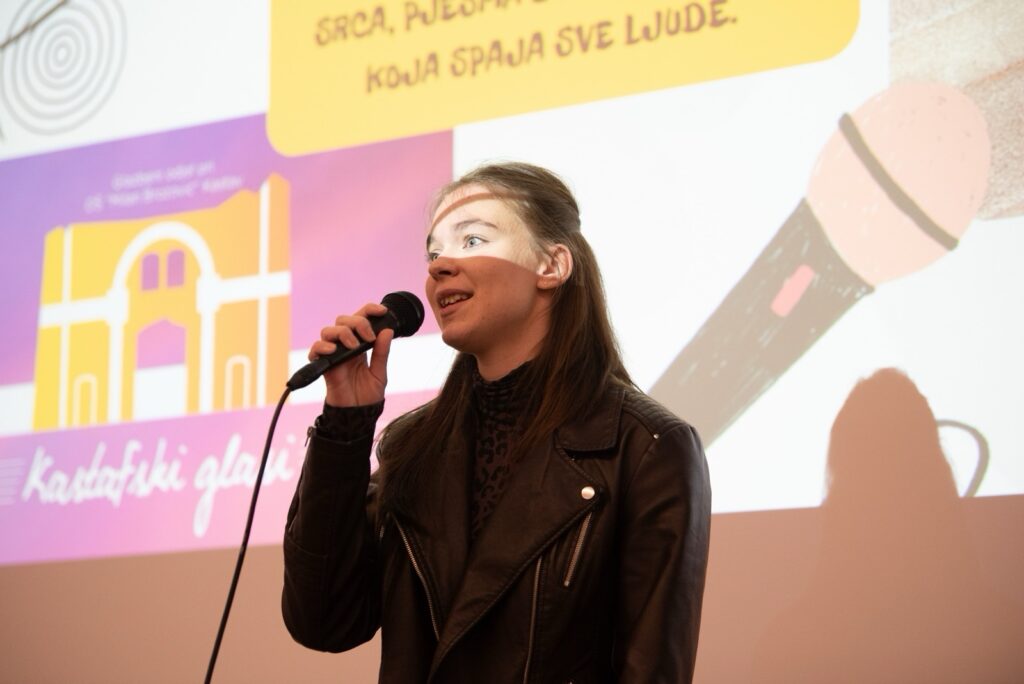 Učenica 8. razreda naše škole Nicole Šibenik, ove je godine po prvi put nastupila na Kastafskim glasima s pjesmom Zaljubila sam se grupe Detour, koju je pripremila sa svojom mentoricom Ivanom Herman.